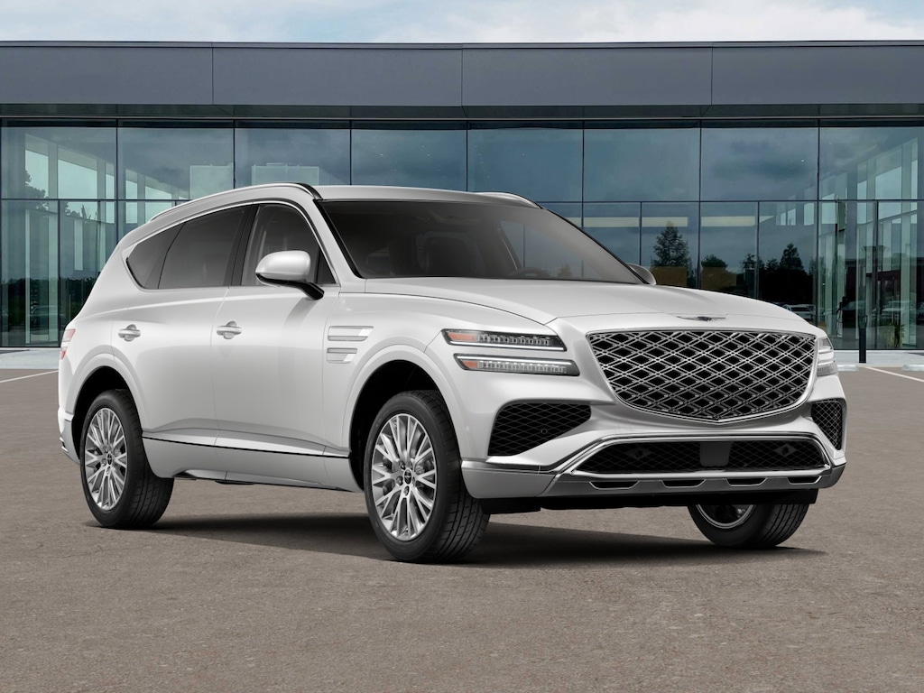 This GV80 is well equipped with Option Group 01, 12 Speakers, 4-Wheel Disc Brakes, ABS brakes, Air Conditioning, Alloy wheels, AM/FM radio: SiriusXM, Anti-whiplash front head restraints, Auto High-beam Headlights, Auto tilt-away steering wheel, Auto-dimming door mirrors, Auto-dimming Rear-View mirror, Auto-leveling suspension, Automatic temperature control, Brake assist, Bumpers: body-color, Cargo Blocks, Cargo Mat, Cargo Net, Compass, Delay-off headlights, Driver door bin, Driver vanity mirror, Dual front impact airbags, Dual front side impact airbags, Electronic Stability Control, Emergency communication system: Genesis Connected Services, Exterior Parking Camera Rear, First Aid Kit, Four wheel independent suspension, Fragrance Cartridge, Front and Rear Mudguards, Front anti-roll bar, Front Bucket Seats, Front Center Armrest, Front dual zone A/C, Front reading lights, Fully automatic headlights, Garage door transmitter: HomeLink, Heated door mirrors, Heated Front Bucket Seats, Heated front seats, Illuminated entry, Knee airbag, Leather steering wheel, Leatherette Seating Surfaces, Low tire pressure warning, Memory seat, Navigation System, Occupant sensing airbag, Outside temperature display, Overhead airbag, Overhead console, Panic alarm, Passenger door bin, Passenger vanity mirror, Power door mirrors, Power driver seat, Power Liftgate, Power passenger seat, Power steering, Power windows, Radio data system, Radio: AM/FM/HD, Rain sensing wipers, Rear air conditioning, Rear anti-roll bar, Rear reading lights, Rear seat center armrest, Rear side impact airbag, Rear window defroster, Rear window wiper, Remote keyless entry, Roof Rack Cross Bars, Security system, Speed control, Speed-sensing steering, Speed-Sensitive Wipers, Split folding rear seat, Spoiler, Steering wheel memory, Steering wheel mounted audio controls, Tachometer, Telescoping steering wheel, Tilt steering wheel, Traction control, Trip computer, Turn signal indicator mirrors, Variably intermittent wipers, and Wheels: 19" x 8.5J Medium Metallic Gray Alloy.