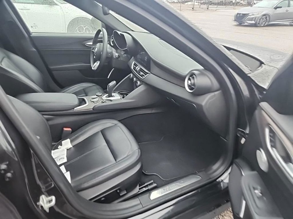 This Giulia is well equipped with Active Assist Plus Package (Active Blind Spot Assist, Driver Attention Alert, Highway Assist System, Intelligent Speed Assist (ISA), Lane Keep Assist, Traffic Jam Assist, and Traffic Sign Recognition), Premium Interior & Sound Package (14 Speaker harman/kardon Premium Audio and Leather Dash & Upper Doors), Quick Order Package 22G (Silver Ti Badge), Apple CarPlay/Android Auto, Heated front seats, Heated rear seats, Leather Seats, Power moonroof, 4-Wheel Disc Brakes, 8 Speakers, ABS brakes, Air Conditioning, Alloy wheels, AM/FM radio: SiriusXM, Auto High-beam Headlights, Auto-dimming door mirrors, Auto-dimming Rear-View mirror, Automatic temperature control, Brake assist, Bumpers: body-color, Compass, Delay-off headlights, Driver door bin, Driver vanity mirror, Dual front impact airbags, Dual front side impact airbags, Electronic Stability Control, Emergency communication system: SiriusXM Guardian - included trial, Exterior Parking Camera Rear, Four wheel independent suspension, Front anti-roll bar, Front Bucket Seats, Front Center Armrest, Front dual zone A/C, Front reading lights, Fully automatic headlights, Garage door transmitter, Genuine wood console insert, Genuine wood dashboard insert, Genuine wood door panel insert, Gloss Red Calipers w/White Script, Heated door mirrors, Heated steering wheel, High intensity discharge headlights: Bi-Xenon, Illuminated entry, Knee airbag, Leather Shift Knob, Leather steering wheel, Low tire pressure warning, Memory seat, Navigation System, Occupant sensing airbag, Outside temperature display, Overhead airbag, Overhead console, Panic alarm, Passenger door bin, Passenger vanity mirror, Power door mirrors, Power driver seat, Power passenger seat, Power steering, Power windows, Radio data system, Radio: AM/FM/HD 8.8" w/Navigation, Rain sensing wipers, Rear anti-roll bar, Rear fog lights, Rear reading lights, Rear seat center armrest, Rear window defroster, Remote keyless entry, Security system, Speed control, Speed-sensing steering, Speed-Sensitive Wipers, Split folding rear seat, Sport steering wheel, Steering wheel mounted audio controls, Tachometer, Telescoping steering wheel, Tilt steering wheel, Traction control, Trip computer, Turn signal indicator mirrors, Variably intermittent wipers, and Wheels: 18" x 8.0" Dark Turbine Aluminum.