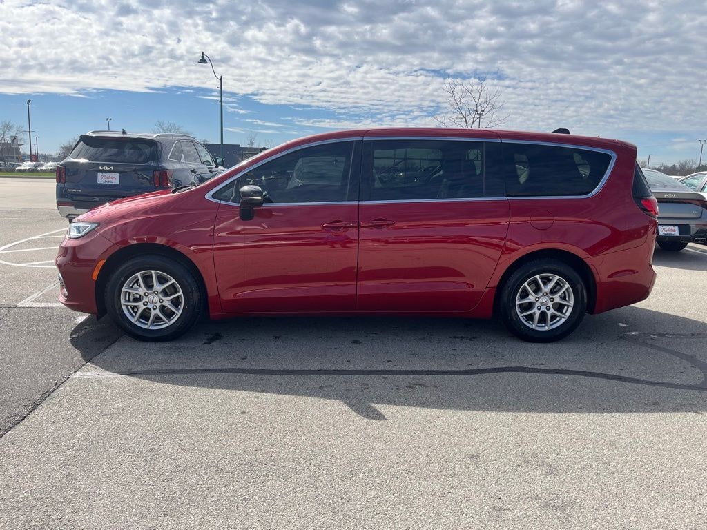 This Pacifica is well equipped with Quick Order Package 27L, Pacifica Select, 4D Passenger Van, 3.6L V6 24V VVT, 9-Speed 948TE Automatic, FWD, Red Hot Pearlcoat, Black Artificial Leather, Heated front seats, Heated steering wheel, Power Liftgate, Radio: Uconnect 5 with 10.1" Display, 10.1" Touchscreen Display, 17" x 7.0" Aluminum Wheels, 3.25 Axle Ratio, 3rd row seats: split-bench, 4-Wheel Disc Brakes, 4G LTE Wi-Fi Hot Spot, 6 Speakers, ABS brakes, Air Conditioning, Alloy wheels, AM/FM radio: SiriusXM, Apple CarPlay, Apple CarPlay/Android Auto, Auto-dimming Rear-View mirror, Automatic temperature control, Black Seats, Brake assist, Bumpers: body-color, Caprice Leatherette Bucket Seats, Compass, Delay-off headlights, Disassociated Touchscreen Display, Driver door bin, Driver vanity mirror, Driver's Seat Mounted Armrest, Dual front impact airbags, Dual front side impact airbags, Electronic Stability Control, Emergency communication system: Chrysler Connect, For Details, Visit DriveUconnect.com, Four wheel independent suspension, Front anti-roll bar, Front Bucket Seats, Front dual zone A/C, Front Fascia Air Deflectors, Front fog lights, Front reading lights, Fully automatic headlights, Garage door transmitter, Google Android Auto, GPS Antenna Input, Heated door mirrors, Illuminated entry, Integrated Active Noise Cancellation, Integrated Center Stack Radio, Knee airbag, Low tire pressure warning, Manufacturer's Statement of Origin, Memory seat, Occupant sensing airbag, Outside temperature display, Overhead airbag, Overhead console, Panic alarm, ParkView Rear Back-Up Camera, Passenger door bin, Passenger seat mounted armrest, Passenger vanity mirror, Power door mirrors, Power driver seat, Power steering, Power windows, Radio data system, Rain sensing wipers, Rear air conditioning, Rear reading lights, Rear window defroster, Rear window wiper, Reclining 3rd row seat, Remote keyless entry, Security system, SiriusXM Guardian - Included Trial (B), Speed control, Split folding rear seat, Spoiler, Steering wheel mounted audio controls, Tachometer, Telescoping steering wheel, Tilt steering wheel, Touring Suspension, Traction control, Trip computer, Turn signal indicator mirrors, USB Host Flip, Variably intermittent wipers, and Voltmeter.