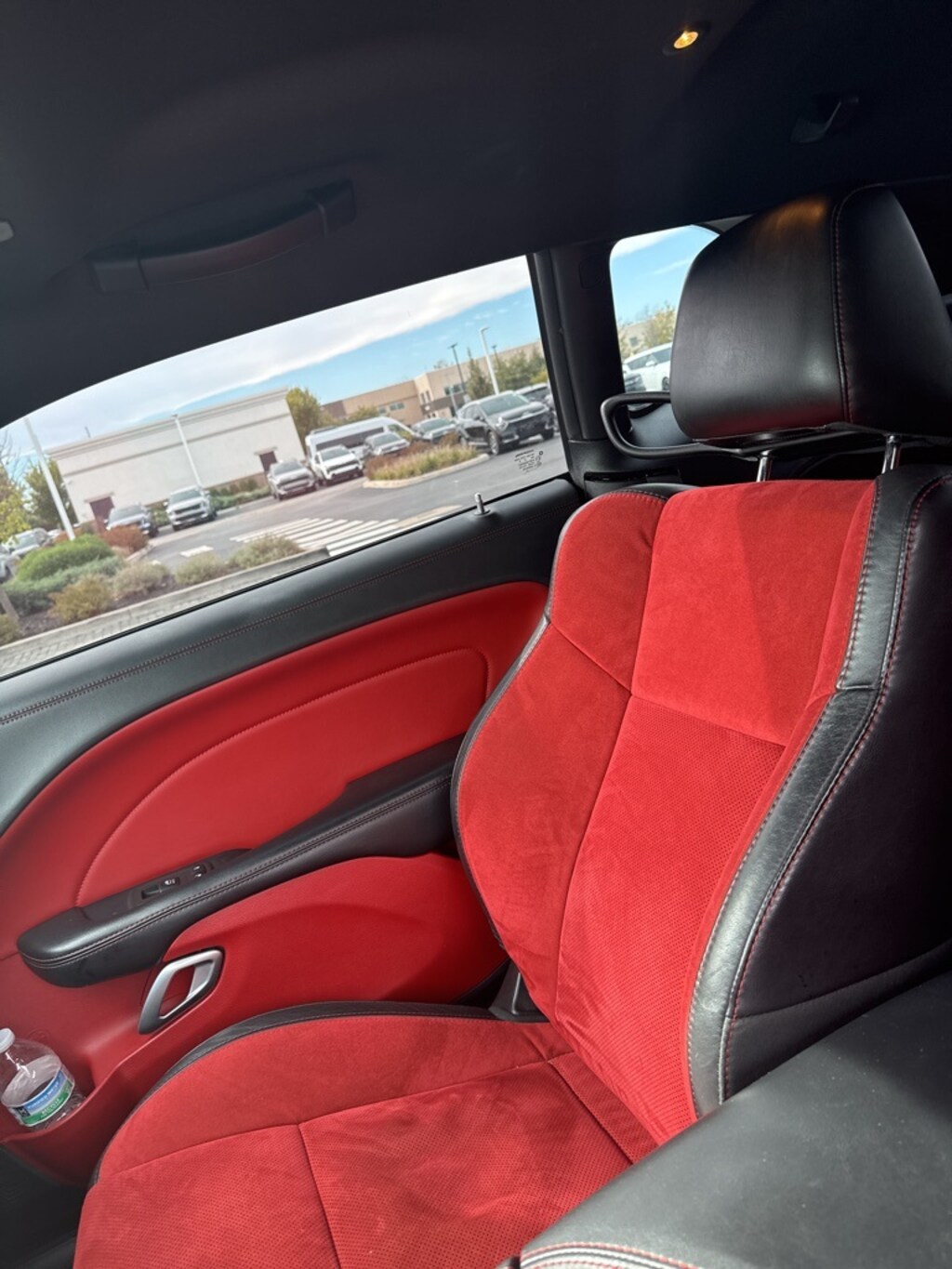 This Challenger is well equipped with Driver Convenience Group (Blind Spot & Cross Path Detection, High-Intensity Discharge Headlamps, Power Multi-Function Foldaway Mirrors, and Rhombi Illum Air Catcher Headlamp), harman/kardon Audio Group w/Subwoofer (18 Speakers Premium Audio System, harman/kardon GreenEdge Amp, Surround Sound, and Trunk Mounted Subwoofer), Performance Handling Group (230MM Rear Axle, Black Brake Calipers, Brembo 4-Piston Fixed Caliper Brakes, Flat-Bottom Steering Wheel, High Performance Suspension, and Line Lock), Plus Package (1-Yr SiriusXM Guardian Trial, 276 Watt Amplifier, 4G LTE Wi-Fi Hot Spot, 6 Premium Alpine Speakers, 8.4" Touchscreen Display, Dodge Performance Pages, Door Trim Panel w/Ambient Lighting, For Details, Visit DriveUconnect.com, For More Info, Call 800-643-2112, HD Radio, Heated Front Seats, Heated Steering Wheel, Power Tilt/Telescope Steering Column, Premium-Stitched Dash Panel, Radio: Uconnect 4C w/8.4" Display, Radio/Driver Seat/Mirrors Memory, Shark Fin Antenna, SiriusXM Radio Service, SiriusXM Satellite Radio, and Wheels: 20" x 8" Machined w/Granite Pocket), Quick Order Package 22H, Shaker Package (Black Fuel Filler Door, Black Grille w/Bezel, Challenger Script Grille Badge, Dash Plaque, Gloss Black I/P Cluster Trim Rings, MOPAR Shaker Hood, MOPAR Shaker Intake, Rear Black Spoiler, Underhood Shaker Decal, and White Face Instrument Cluster), 3.90 Rear Axle Ratio, 4-Wheel Disc Brakes, 6 Speakers, ABS brakes, Air Conditioning, Alloy wheels, AM/FM radio, Anti-whiplash front head restraints, Apple CarPlay, Apple CarPlay/Android Auto, Auto-dimming Rear-View mirror, Automatic temperature control, Brake assist, Bumpers: body-color, Compass, Delay-off headlights, Driver door bin, Driver vanity mirror, Dual Black R/T Side Stripes, Dual front impact airbags, Dual front side impact airbags, Electronic Stability Control, Four wheel independent suspension, Front anti-roll bar, Front Bucket Seats, Front Center Armrest, Front dual zone A/C, Front fog lights, Front License Plate Bracket, Front reading lights, Fully automatic headlights, Garage door transmitter, Google Android Auto, GPS Antenna Input, Heated door mirrors, Houndstooth Cloth Performance Seats, Illuminated entry, Integrated Center Stack Radio, Integrated Voice Command w/Bluetooth, Leather Shift Knob, Low tire pressure warning, Media Hub (2 USB, AUX), Nappa/Alcantara Performance Seats, Outside temperature display, Overhead airbag, Overhead console, Panic alarm, ParkView Rear Back-Up Camera, Passenger door bin, Passenger