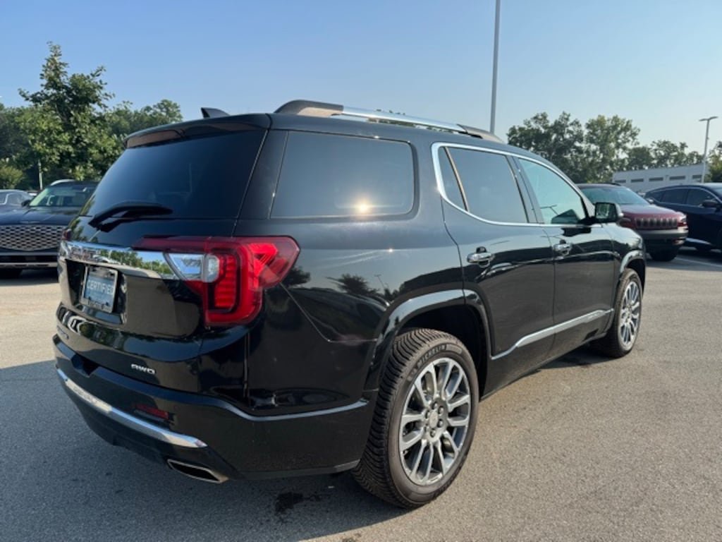 This Acadia is well equipped with Denali Technology Package (Adaptive Cruise Control, Enhanced Automatic Emergency Braking, HD Surround Vision, Rear Camera Mirror, and Rear Camera Mirror Washer), Denali Ultimate Package (Adaptive Ride Control, Dual SkyScape 2-Panel Power Sunroof, and Performance Ride & Handling Suspension), Preferred Equipment Group 5SA, Trailering Package (Heavy-Duty Cooling System, Hitch Guidance w/Hitch View, and Trailering Assist Guidelines), Interior Protection Package (LPO) (1st & 2nd Row All-Weather Floor Mats, 3rd Row All-Weather Floor Mats, and All-Weather Rear Cargo Mat (LPO)), AWD, Jet Black Leather, 20" Ultra Bright Machined Aluminum Wheels, Navigation System, 170 Amp Alternator, 3 Years of OnStar & Connected Services Plan (DISC), 3.49 Final Drive Axle Ratio, 3rd row seats: split-bench, 4-Wheel Disc Brakes, 6-Passenger (2-2-2 Seating Configuration), 8 Speakers, 8-Way Power Driver Seat Adjuster, 8-Way Power Passenger Seat Adjuster, ABS brakes, Air Conditioning, AM/FM radio: SiriusXM with 360L, Apple CarPlay/Android Auto, Auto High-beam Headlights, Auto-dimming door mirrors, Auto-dimming Rear-View mirror, Automatic temperature control, Bose Premium 8-Speaker Audio System Feature, Brake assist, Bright Thatcham Wheel Locks (LPO), Color Match Body Molding, Compass, Delay-off headlights, Driver door bin, Driver vanity mirror, Dual front impact airbags, Dual front side impact airbags, Electronic Stability Control, Emergency communication system: OnStar and GMC connected services capable, Four wheel independent suspension, Front anti-roll bar, Front Bucket Seats, Front Center Armrest, Front dual zone A/C, Front fog lights, Front reading lights, Fully automatic headlights, Garage door transmitter, Heads-Up Display, Heated & Ventilated Driver & Front Passenger Seats, Heated door mirrors, Heated Driver & Front Passenger Seats, Heated front seats, Heated Rear Outboard Seating Positions, Heated rear seats, Heated steering wheel, Illuminated entry, Knee airbag, Low tire pressure warning, Memory seat, Not Equipped w/Front & Rear Park Assist, Occupant sensing airbag, Outside temperature display, Overhead airbag, Overhead console, Panic alarm, Passenger door bin, Passenger vanity mirror, Perforated Leather-Appointed Seat Trim, Power door mirrors, Power Driver Lumbar Control Seat Adjuster, Power driver seat, Power Liftgate, Power Passenger Lumbar Control Seat Adjuster, Power passenger seat, Power steering, Power windows, Radio data system, Radio: AM/FM 8" Diagonal Multi-Touch Navigation, Rear air conditioning, Rear anti-roll bar, Rear reading lights, Rear window defroster, Rear window wiper, Remote keyless entry, Roof rack: rails only, Security system, SiriusXM w/360L, Speed control, Speed-sensing steering, Spoiler, Steering wheel memory, Steering wheel mounted audio controls, Tachometer, Telescoping steering wheel, Tilt steering wheel, Traction control, Trip computer, Turn signal indicator mirrors, Variably intermittent wipers, Ventilated front seats, Voltmeter, and Wireless Apple CarPlay/Wireless Android Auto.