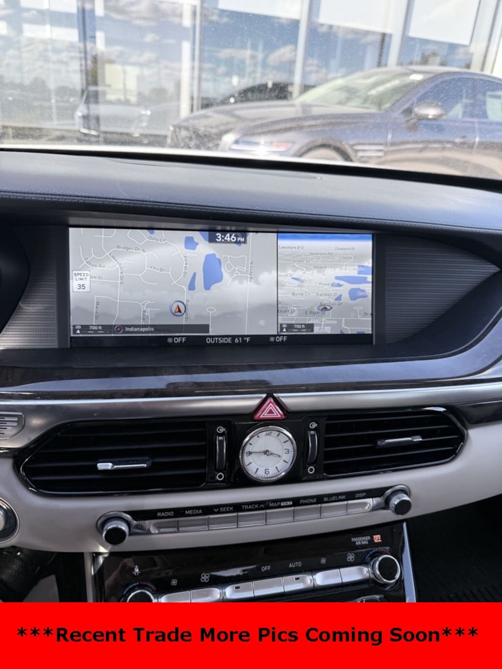 2017 Genesis G90 3.3T Premium 8-Speed Automatic with SHIFTRONIC 3.3L V6 DGI DOHC 24V 17 Speakers, 4-Wheel Disc Brakes, ABS brakes, Adaptive suspension, Air Conditioning, Alloy wheels, AM/FM radio: SiriusXM, Auto High-beam Headlights, Auto tilt-away steering wheel, Auto-dimming Rear-View mirror, Auto-leveling suspension, Automatic temperature control, Brake assist, Delay-off headlights, Dual front impact airbags, Dual front side impact airbags, Electronic Stability Control, Emergency communication system: Genesis Connected Services, Exterior Parking Camera Rear, Four wheel independent suspension, Front anti-roll bar, Front Bucket Seats, Front Center Armrest, Front dual zone A/C, Front fog lights, Fully automatic headlights, Garage door transmitter: HomeLink, Genuine wood dashboard insert, Genuine wood door panel insert, Head restraints memory, Heads-Up Display, Heated & Vented Front Bucket Seats w/Memory, Heated door mirrors, Heated front seats, Heated rear seats, Heated steering wheel, High intensity discharge headlights: Bi-Xenon, Illuminated entry, Knee airbag, Leather Shift Knob, Leather steering wheel, Low tire pressure warning, Memory seat, Nappa Leather Seating Surfaces, Navigation System, Occupant sensing airbag, Outside temperature display, Overhead airbag, Panic alarm, Power adjustable front head restraints, Power door mirrors, Power driver seat, Power moonroof, Power passenger seat, Power steering, Power windows, Radio: AM/FM/HD/SiriusXM/MP3 Audio System, Rain sensing wipers, Rear air conditioning, Rear anti-roll bar, Rear side impact airbag, Rear Window Blind, Rear window defroster, Remote keyless entry, Security system, Speed control, Speed-sensing steering, Speed-Sensitive Wipers, Steering wheel memory, Steering wheel mounted audio controls, Telescoping steering wheel, Tilt steering wheel, Traction control, Turn signal indicator mirrors, Variably intermittent wipers, Ventilated front seats, Wheels: 19 X 8.5J Fr & 19 X 9.5J Rr Chrome Alloy.