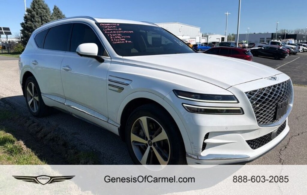 This GV80 is well equipped with Advanced Package (3-Zone Climate Control, Blind-Spot View Monitor, Ergo Motion Driver Seat, Head-Up Display, Heated 2nd Row Seats, Option Group 06, Parking Collision-Avoidance Assist, Power Cushion Extension & Bolster, Radio: AM/FM/SiriusXM/HD Lexicon Prem Audio System, Remote Smart Parking Assist, and Surround View Monitor), Prestige 20" Package, Navigation System, Power moonroof, Wheels: 20" x 8.5J Medium Metallic Gray Alloy, 12 Speakers, 12.3" 3D Digital Instrument Cluster, 2nd Row Vanity Mirrors, 3.909 Axle Ratio, 4-Wheel Disc Brakes, ABS brakes, Adaptive suspension, Air Conditioning, AM/FM radio: SiriusXM, Android Auto & Apple CarPlay, Anti-whiplash front head restraints, Auto High-beam Headlights, Auto tilt-away steering wheel, Auto-dimming door mirrors, Auto-dimming Rear-View mirror, Automatic temperature control, Brake assist, Bumpers: body-color, Compass, Delay-off headlights, Driver door bin, Driver vanity mirror, Dual front impact airbags, Dual front side impact airbags, Electronic Limited Slip Differential, Electronic Stability Control, Emergency communication system: Genesis Connected Services, Exterior Parking Camera Rear, First Aid Kit, Forward Attention Warning, Four wheel independent suspension, Front anti-roll bar, Front Bucket Seats, Front Center Armrest, Front dual zone A/C, Front reading lights, Fully automatic headlights, Garage door transmitter: HomeLink, Genuine wood console insert, Genuine wood dashboard insert, Genuine wood door panel insert, Heated & Ventilated Front Bucket Seats, Heated door mirrors, Heated front seats, Heated steering wheel, Illuminated entry, Knee airbag, Leather Seating Surfaces, Leather steering wheel, Leatherette Seating Surfaces, Low tire pressure warning, Memory seat, Mudguards, Nappa Leather Seating Surfaces, Occupant sensing airbag, Outside temperature display, Overhead airbag, Overhead console, Panic alarm, Passenger door bin, Passenger vanity mirror, Power 2nd Row Outboard Seats, Power Door Closure, Power door mirrors, Power driver seat, Power Liftgate, Power passenger seat, Power Rear Door Shades, Power steering, Power windows, Radio data system, Radio: AM/FM/SiriusXM/HD Audio System, Rain sensing wipers, Rear air conditioning, Rear anti-roll bar, Rear reading lights, Rear seat center armrest, Rear side impact airbag, Rear window defroster, Rear window wiper, Remote keyless entry, Road Active Noise Control, Security system, Speed control, Speed-sensing steering, Speed-Sensitive Wipers, Split folding rear seat, Spoiler, Steering wheel memory, Steering wheel mounted audio controls, Suede Headliner, Tachometer, Telescoping steering wheel, Tilt steering wheel, Traction control, Trip computer, Turn signal indicator mirrors, Variably intermittent wipers, Ventilated 2nd Row Outboard Seats, and Ventilated front seats.