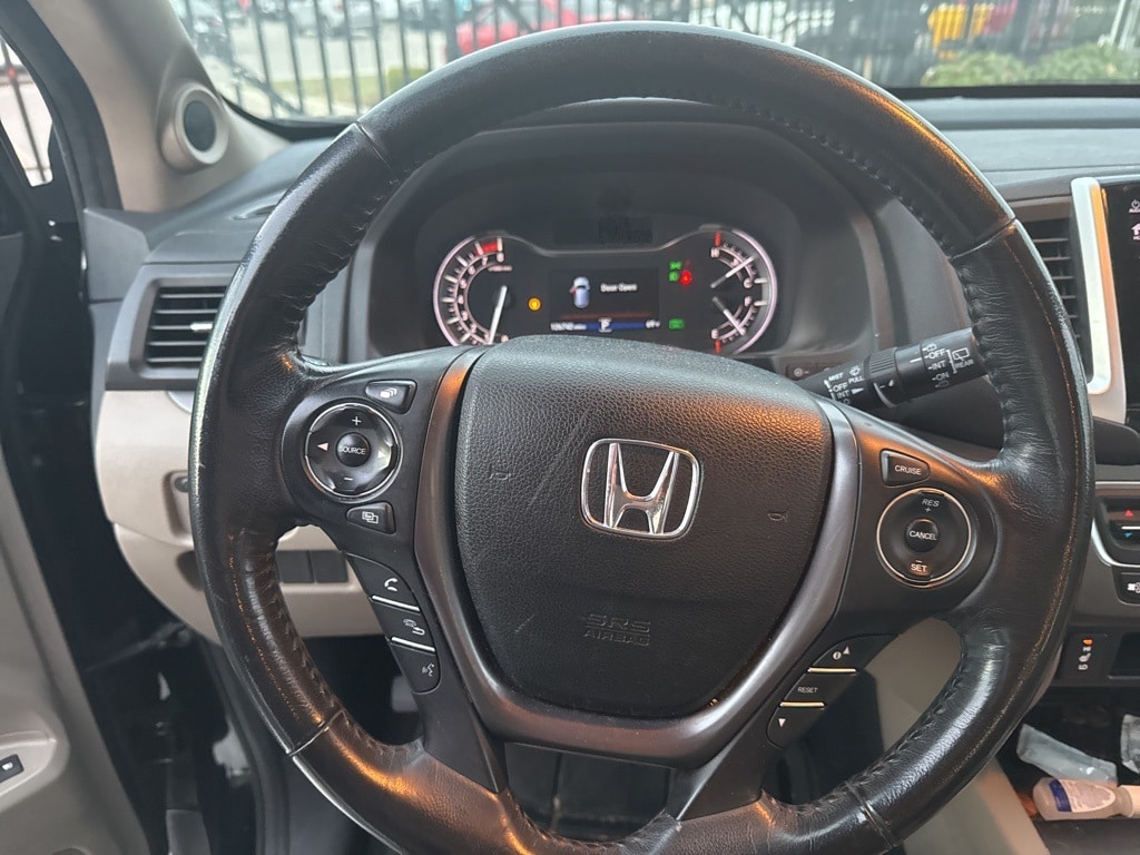 This Pilot is well equipped with Pilot EX-L, 4D Sport Utility, 3.5L V6 24V SOHC i-VTEC, 6-Speed Automatic, AWD, Black Forest Pearl, Beige w/Leather-Trimmed Seats, 3rd row seats: split-bench, Heated Front Bucket Seats, Leather-Trimmed Seats, Power Liftgate, Power moonroof, 18" Alloy Wheels, 4-Wheel Disc Brakes, 4.25 Axle Ratio, 7 Speakers, ABS brakes, Air Conditioning, Alloy wheels, AM/FM radio: SiriusXM, Apple CarPlay/Android Auto, Auto-dimming Rear-View mirror, Automatic temperature control, Brake assist, Bumpers: body-color, Compass, Delay-off headlights, Driver door bin, Driver vanity mirror, Dual front impact airbags, Dual front side impact airbags, Electronic Stability Control, Exterior Parking Camera Rear, Four wheel independent suspension, Front anti-roll bar, Front Bucket Seats, Front Center Armrest, Front dual zone A/C, Front fog lights, Front reading lights, Fully automatic headlights, Garage door transmitter: HomeLink, Heated door mirrors, Heated front seats, Illuminated entry, Leather Shift Knob, Low tire pressure warning, Occupant sensing airbag, Outside temperature display, Overhead airbag, Overhead console, Panic alarm, Passenger door bin, Passenger vanity mirror, Power door mirrors, Power driver seat, Power passenger seat, Power steering, Power windows, Radio data system, Radio: AM/FM Audio System, Rear air conditioning, Rear anti-roll bar, Rear reading lights, Rear seat center armrest, Rear window defroster, Rear window wiper, Remote keyless entry, Security system, SiriusXM Radio, Speed control, Speed-sensing steering, Speed-Sensitive Wipers, Split folding rear seat, Spoiler, Steering wheel mounted audio controls, Tachometer, Telescoping steering wheel, Tilt steering wheel, Traction control, Trip computer, and Variably intermittent wipers.