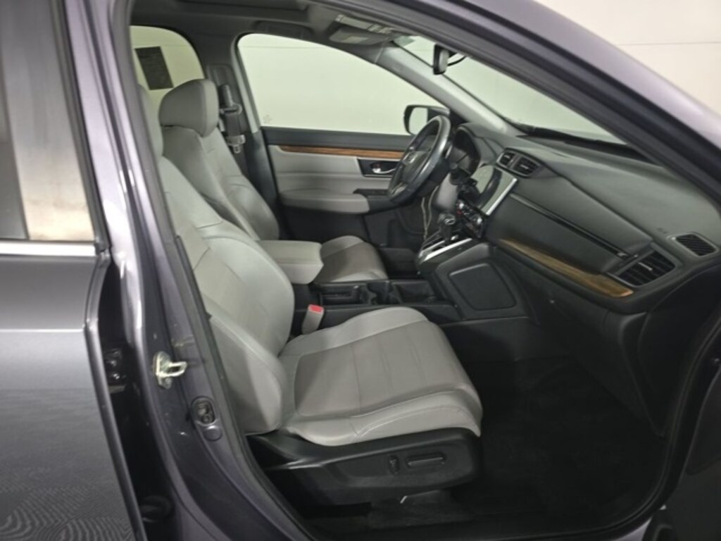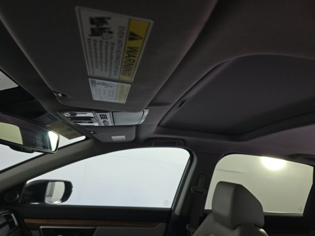 This CR-V is well equipped with AWD, Apple CarPlay/Android Auto, Blind Spot Information (BSI) System warning, Heated Front Bucket Seats, Leather Seat Trim, Power Liftgate, Power moonroof, 18" Alloy Wheels, 4-Wheel Disc Brakes, 5.64 Axle Ratio, 8 Speakers, ABS brakes, Air Conditioning, Alloy wheels, AM/FM radio: SiriusXM, Auto High-beam Headlights, Auto-dimming Rear-View mirror, Automatic temperature control, Brake assist, Bumpers: body-color, Compass, Delay-off headlights, Driver door bin, Driver vanity mirror, Dual front impact airbags, Dual front side impact airbags, Electronic Stability Control, Exterior Parking Camera Rear, Forward collision: Collision Mitigation Braking System (CMBS) + FCW mitigation, Four wheel independent suspension, Front anti-roll bar, Front Bucket Seats, Front Center Armrest, Front dual zone A/C, Front fog lights, Front reading lights, Fully automatic headlights, Garage door transmitter: HomeLink, Heated door mirrors, Heated front seats, Illuminated entry, Lane departure: Lane Keeping Assist System (LKAS) active, Leather Shift Knob, Low tire pressure warning, Memory seat, Occupant sensing airbag, Outside temperature display, Overhead airbag, Overhead console, Panic alarm, Passenger door bin, Passenger vanity mirror, Power door mirrors, Power driver seat, Power passenger seat, Power steering, Power windows, Radio data system, Radio: AM/FM/SiriusXM Audio System, Rear anti-roll bar, Rear seat center armrest, Rear window defroster, Rear window wiper, Remote keyless entry, Security system, Speed control, Speed-sensing steering, Speed-Sensitive Wipers, Split folding rear seat, Spoiler, Steering wheel mounted audio controls, Tachometer, Telescoping steering wheel, Tilt steering wheel, Traction control, Trip computer, Turn signal indicator mirrors, and Variably intermittent wipers.