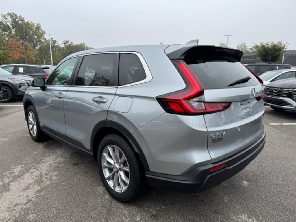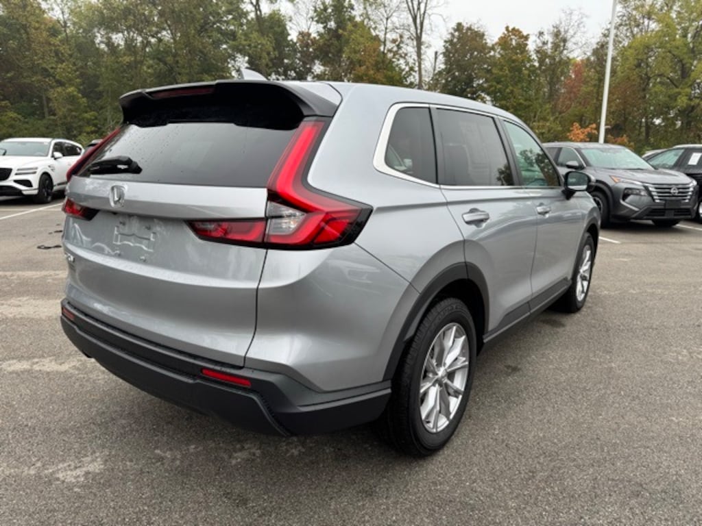 This CR-V is well equipped with AWD, Power moonroof, 18" Alloy wheels, 4-Wheel Disc Brakes, 5.64 Axle Ratio, 6 Speakers, ABS brakes, Adaptive Cruise Control: Adaptive Cruise Control (ACC) with Low-Speed Follow, Air Conditioning, Apple CarPlay/Android Auto, Auto High-beam Headlights, Automatic temperature control, Brake assist, Cloth Seat Trim, Color Match Body Molding, Compass, Delay-off headlights, Driver door bin, Driver vanity mirror, Dual front impact airbags, Dual front side impact airbags, Electronic Stability Control, Exterior Parking Camera Rear, Four wheel independent suspension, Front anti-roll bar, Front Bucket Seats, Front Center Armrest, Front dual zone A/C, Front reading lights, Fully automatic headlights, Heated door mirrors, Heated Front Bucket Seats, Heated front seats, Illuminated entry, Knee airbag, Low tire pressure warning, Occupant sensing airbag, Outside temperature display, Overhead airbag, Overhead console, Panic alarm, Passenger door bin, Passenger vanity mirror, Power door mirrors, Power driver seat, Power steering, Power windows, Radio data system, Radio: 240-Watt AM/FM Audio System, Rear anti-roll bar, Rear reading lights, Rear seat center armrest, Rear side impact airbag, Rear window defroster, Rear window wiper, Remote keyless entry, Security system, Speed control, Speed-sensing steering, Speed-Sensitive Wipers, Split folding rear seat, Spoiler, Steering wheel mounted audio controls, Tachometer, Telescoping steering wheel, Tilt steering wheel, Traction control, Trip computer, Turn signal indicator mirrors, Variably intermittent wipers, and Wheels: 18" Sparkle Silver Metallic.
