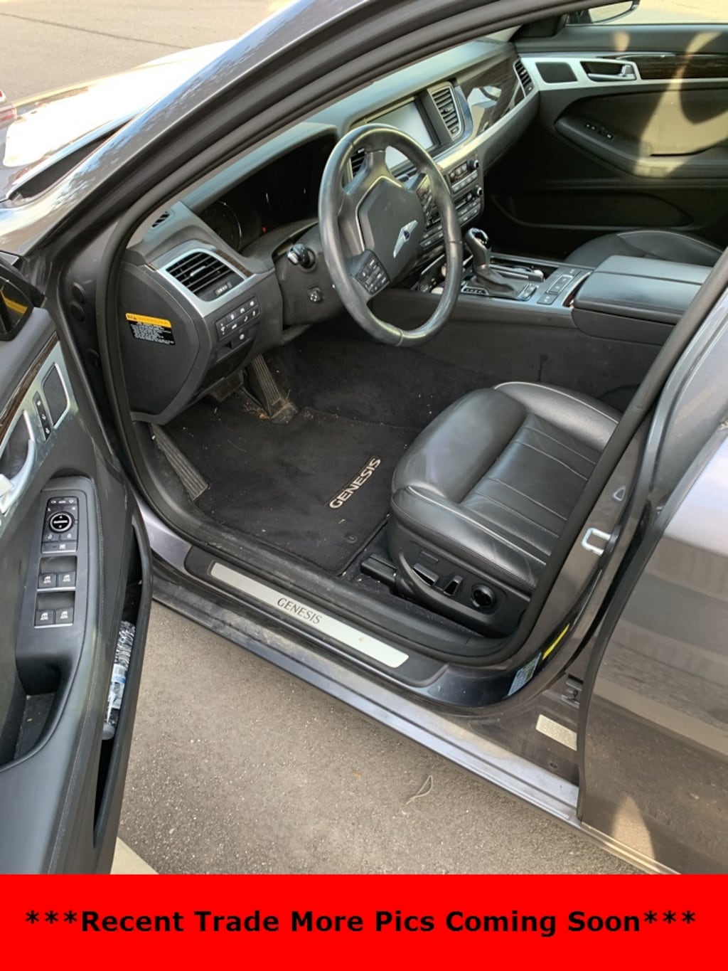 Empire State Gray 2015 Hyundai Genesis 3.8 AWD 8-Speed Automatic with SHIFTRONIC 3.8L V6 DGI DOHC Dual CVVT Black Leather, 7 Speakers, 7" TFT LCD Cluster Display, ABS brakes, Air Conditioning, Auto-Dimming Outside Mirrors, Automatic Emergency Braking (AEB), Automatic temperature control, Blind Spot Detection System, Driver door bin, Dual front impact airbags, Dual front side impact airbags, Electronic Parking Brake w/Automatic Vehicle Hold, Emergency communication system: Blue Link, Front & Rear Parking Assistance System, Front reading lights, Haptic Feedback Steering Wheel, Heated front seats, HID Headlights w/Auto-Leveling, High Beam Assist, Integrated Memory System (IMS), Knee airbag, Lane Departure Warning System (LDWS), Lane Keep Assist, Leather Seating Surfaces, Navigation System, Occupant sensing airbag, Parking Guidelines, Power Heated & Cooled Front Bucket Seats, Power Heated/Cooled Front Bucket Seats, Power Rear Sunshade, Power Tilt-and-Slide Panoramic Sunroof, Power Tilt-and-Telescopic Steering Wheel, Power windows, Pre-Safe® ty Seatbelt, Radio: AM/FM/HD/SiriusXM/CD/DVD/MP3 Audio System, Rear anti-roll bar, Rear seat center armrest, Remote keyless entry, Signature Package 02, Smart Cruise Control, Tachometer, Technology Package 03, Telescoping steering wheel, Ultra-Premium Leather Seating Surfaces.