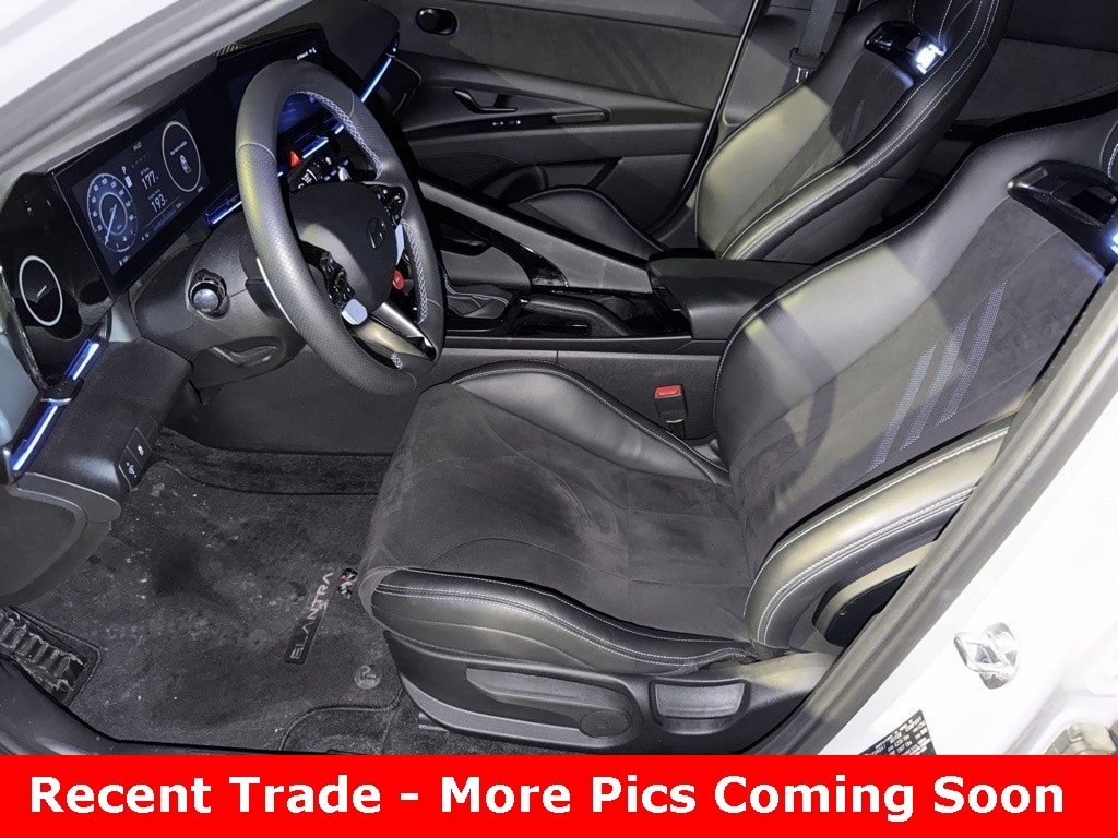 This Elantra N is well equipped with Tons of Options!, 18" Alloy wheels, 4-Wheel Disc Brakes, 8 Speakers, ABS brakes, Air Conditioning, AM/FM radio: SiriusXM, Apple CarPlay & Android Auto, Auto High-beam Headlights, Automatic temperature control, Brake assist, Cargo Net, Color Match Body Molding, Compass, Delay-off headlights, Driver door bin, Driver vanity mirror, Dual front impact airbags, Dual front side impact airbags, Electronic Stability Control, Emergency communication system, Exterior Parking Camera Rear, First Aid Kit, Four wheel independent suspension, Front anti-roll bar, Front Bucket Seats, Front Center Armrest w/Storage, Front dual zone A/C, Front reading lights, Fully automatic headlights, Heated door mirrors, Heated front seats, Illuminated entry, Leather Shift Knob, Leather steering wheel, Leather-Trimmed with Microsuede Inserts Seat Trim, Low tire pressure warning, N Light Heated Sport Bucket Seats, Navigation System, Occupant sensing airbag, Outside temperature display, Overhead airbag, Overhead console, Panic alarm, Passenger door bin, Passenger vanity mirror, Power door mirrors, Power moonroof, Power steering, Power windows, Radio: Bose AM/FM/HD/SXM Audio System, Rear Bumper Applique, Rear side impact airbag, Rear window defroster, Remote keyless entry, Reversible Cargo Tray, Roadside Assistance Kit, Security system, Speed control, Speed-sensing steering, Spoiler, Steering wheel mounted audio controls, Tachometer, Telescoping steering wheel, Tilt steering wheel, Traction control, Trip computer, Turn signal indicator mirrors, Variably intermittent wipers, and Wheels: 19" x 8.0" Forged Alloy.