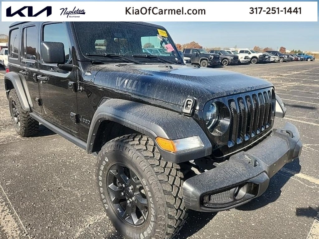 4-Wheel Drive Swing Gate Decal, 7.0" Touchscreen Display, Air Conditioning w/Auto Temperature Control, Air Filtering, Anti-Spin Differential Rear Axle, Apple CarPlay, Automatic Headlamps, Black Grille, Black Trail Rated Badge, Cluster 7.0" TFT Color Display, Deep Tint Sunscreen Windows, For More Info, Call 800-643-2112, Front 1-Touch Down Power Windows, Front LED Fog Lamps, Google Android Auto, GPS Antenna Input, Integrated Center Stack Radio, Leather Wrapped Steering Wheel, LED Headlamp & Fog Lamp Group, LED Premium Reflector Headlamps, Matte Black Jeep Badge, Mold In Color Bumper w/Gloss Black, MOPAR All-Weather Floor Mats (DISC), Power Heated Mirrors, Quick Order Package 25W Willys (DISC), Radio: Uconnect 4 w/7" Display, Remote Keyless Entry, Security Alarm, SiriusXM Radio Service, SiriusXM Satellite Radio, Speed Sensitive Power Locks, Sun Visors w/Illuminated Vanity Mirrors, Technology Group, USB Host Flip, Wheels: 17" x 7.5" Moab Black Aluminum, Willys, Willys Hood Decal, Wrangler Decal.