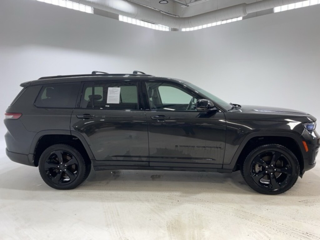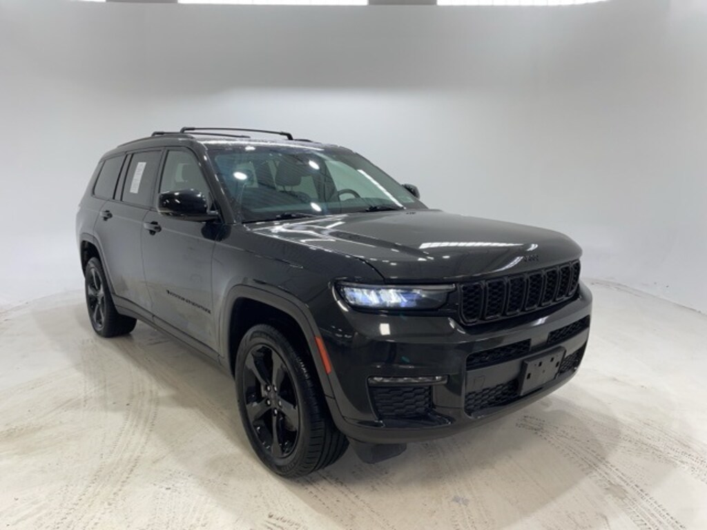 This Grand Cherokee L is well equipped with Black Appearance Package (Gloss Black Exterior Accents, Molded In Color Black/Gloss Black Roof Rails, and Wheels: 20" x 8.5" Gloss Black Painted Aluminum), Quick Order Package 22E, 10.1" Touchscreen Display, 2nd Row Seat Center Armrest/Cupholders, 3rd row seats: split-bench, 4G LTE Wi-Fi Hot Spot, 506 Watt Amplifier, 9 Amplified Speakers w/Subwoofer, Active Noise Control System, All Radio Equipped Vehicles, AM/FM radio: SiriusXM with 360L, Apple CarPlay, Auto High-beam Headlights, Automatic temperature control, Brake assist, Compass, Connected Travel & Traffic Services, Connectivity - US/Canada, Disassociated Touchscreen Display, Dual-Pane Panoramic Sunroof, Electronic Stability Control, For Details, Visit DriveUconnect.com, For More Info, Call 800-643-2112, Front Bucket Seats, Front dual zone A/C, Front fog lights, Front Passenger Interactive Display, Fully automatic headlights, Garage door transmitter, Global Telematics Box Module (TBM), Google Android Auto, GPS Antenna Input, GPS Navigation, HD Radio, Heated door mirrors, Heated front seats, Heated rear seats, Illuminated entry, Integrated Center Stack Radio, Integrated Voice Command w/Bluetooth, Interior Rear Facing Camera, Leather steering wheel, Memory seat, Outside temperature display, ParkView Rear Back-Up Camera, Power door mirrors, Power driver seat, Power Liftgate, Power passenger seat, Pur Wrapped Instrument Panel, Radio: Uconnect 5 Nav w/10.1" Display, Rear air conditioning, Reclining 3rd row seat, Remote keyless entry, SiriusXM w/360L, Speed-Sensitive Wipers, Steering wheel mounted audio controls, Tachometer, Telescoping steering wheel, Tilt steering wheel, Trip computer, Turn signal indicator mirrors, USB Host Flip, Variably intermittent wipers, 3.45 Rear Axle Ratio, 4-Wheel Disc Brakes, ABS brakes, Air Conditioning, Anti-whiplash front head restraints, Delay-off headlights, Dual front impact airbags, Dual front side impact airbags, Emergency communicat
