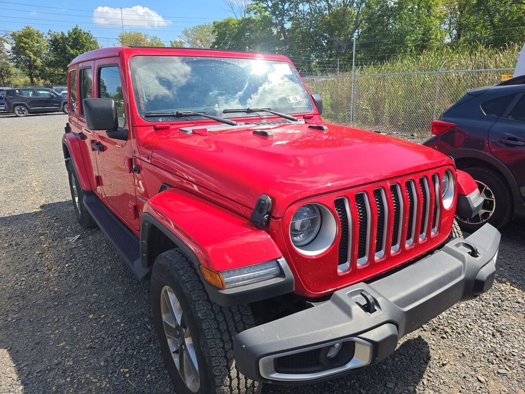 Recent Arrival! CARFAX One-Owner. Firecracker Red Clearcoat 2022 Jeep Wrangler 4D Sport Utility Unlimited Sahara Sky 1-Touch Power Top 3.6L V6 24V VVT 4WD 6-Speed Manual