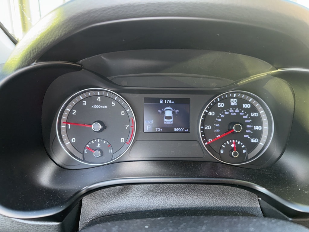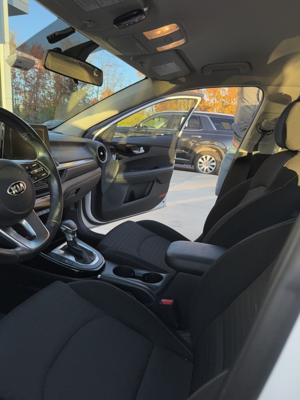 This Forte is well equipped with 4-Wheel Disc Brakes, 6 Speakers, ABS brakes, Air Conditioning, Alloy wheels, AM/FM radio: SiriusXM, Apple CarPlay & Android Auto, Automatic temperature control, Brake assist, Bumpers: body-color, Cargo Tray, Carpeted Floor Mats, Delay-off headlights, Driver door bin, Driver vanity mirror, Dual front impact airbags, Dual front side impact airbags, Electronic Stability Control, Exterior Parking Camera Rear, Front anti-roll bar, Front Bucket Seats, Front Center Armrest, Front dual zone A/C, Front fog lights, Front reading lights, Front wheel independent suspension, Fully automatic headlights, Illuminated entry, Low tire pressure warning, Occupant sensing airbag, Overhead airbag, Overhead console, Panic alarm, Passenger door bin, Passenger vanity mirror, Power door mirrors, Power steering, Power windows, Radio data system, Radio: UVO eServices AM/FM/MP3 Audio System, Rear seat center armrest, Rear window defroster, Remote keyless entry, Security system, Speed control, Split folding rear seat, Steering wheel mounted audio controls, Tachometer, Telescoping steering wheel, Tilt steering wheel, Traction control, Tricot Cloth Seat Trim, Trip computer, Variably intermittent wipers, Wheel Locks, and Wheels: 17" x 7.0" Machine Finish Alloy.