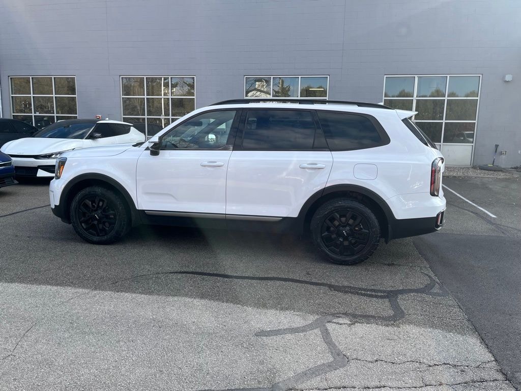 This Telluride is well equipped with Terracotta Interior Color Package, Telluride SX X-Pro, 4D Sport Utility, 3.8L V6 DGI DOHC Dual CVVT, 8-Speed Automatic, AWD, Glacial White Pearl, Black w/Leather Seat Trim, Heated & Ventilated Front Bucket Seats, Navigation System, Power Liftgate, Power moonroof, Ventilated front seats, 10 Speakers, 3.648 Axle Ratio, 3rd row seats: split-bench, 4-Wheel Disc Brakes, ABS brakes, Air Conditioning, Alloy wheels, AM/FM radio: SiriusXM, Apple CarPlay & Android Auto, Auto High-beam Headlights, Auto-dimming Rear-View mirror, Auto-leveling suspension, Automatic temperature control, Brake assist, Bumpers: body-color, Cargo Tray Seat Back, Carpet Floor Mats, Compass, Delay-off headlights, Driver door bin, Driver vanity mirror, Dual front impact airbags, Dual front side impact airbags, Electronic Stability Control, Emergency communication system: 911 Connect, Exterior Parking Camera Rear, Four wheel independent suspension, Front anti-roll bar, Front Bucket Seats, Front Center Armrest, Front dual zone A/C, Front fog lights, Front reading lights, Fully automatic headlights, Garage door transmitter: HomeLink, harman/kardon® Speakers, Heated door mirrors, Heated front seats, Heated steering wheel, Illuminated entry, Knee airbag, Leather Seat Trim, Leather Shift Knob, Leather steering wheel, Low tire pressure warning, Memory seat, Mud Guard Kit, Occupant sensing airbag, Outside temperature display, Overhead airbag, Overhead console, Panic alarm, Passenger door bin, Passenger vanity mirror, Power door mirrors, Power driver seat, Power passenger seat, Power steering, Power windows, Radio data system, Radio: AM/FM harman/kardon Audio System, Rear air conditioning, Rear anti-roll bar, Rear audio controls, Rear reading lights, Rear side impact airbag, Rear window defroster, Rear window wiper, Reclining 3rd row seat, Remote keyless entry, Roof rack: rails only, Security system, Smart Key w/ Push Button and Remote Start, Speed control, Speed-sensing steering, Split folding rear seat, Spoiler, Steering wheel mounted audio controls, Tachometer, Telescoping steering wheel, Tilt steering wheel, Traction control, Trip computer, Turn signal indicator mirrors, Variably intermittent wipers, and Wheels: 18" x 7.5" Black Finish X-PRO Exclusive.