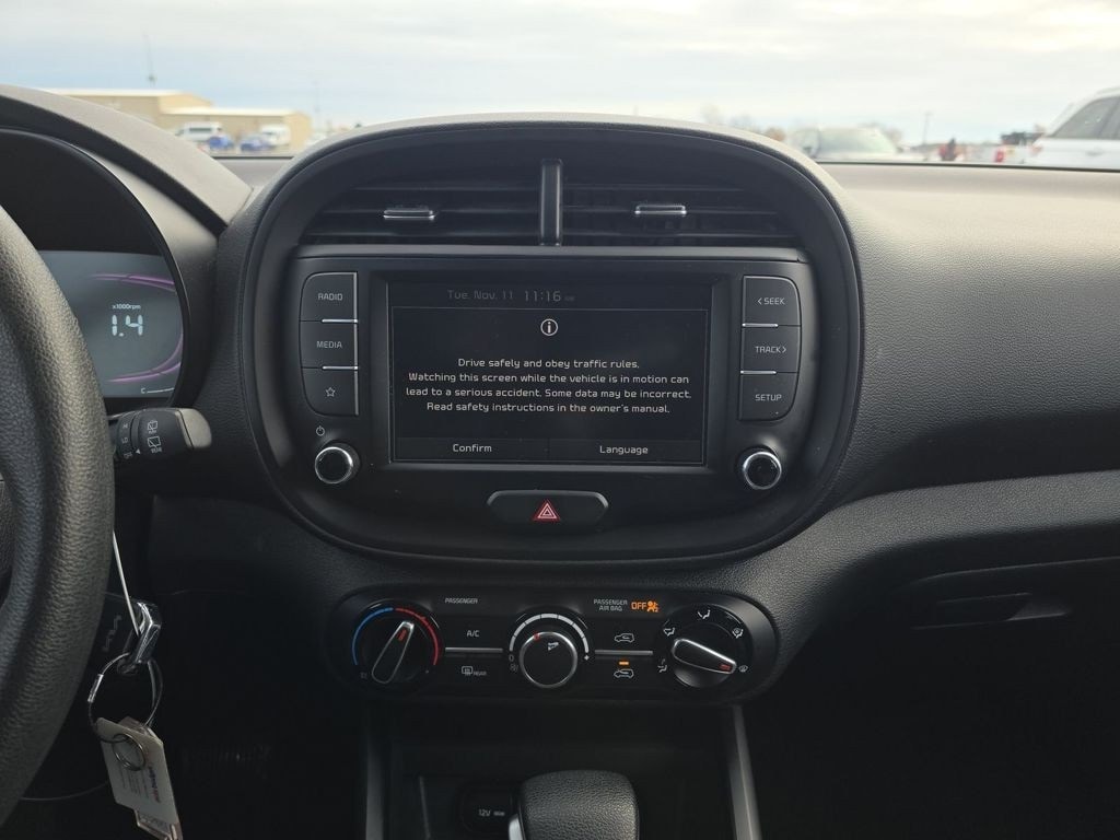 This Soul is well equipped with LX Technology Package (6.5J x 16" Alloy Wheels, Blind-Spot Collision-Avoidance Assist, Lane Change Assist, and Rear Cross-Traffic Collision Avoidance Assist), 4-Wheel Disc Brakes, 6 Speakers, 6.5J x 16" Steel Wheels, ABS brakes, Air Conditioning, AM/FM radio, Apple CarPlay & Android Auto, Auto High-beam Headlights, Brake assist, Bumpers: body-color, Carpeted Floor Mats, Compass, Delay-off headlights, Driver door bin, Driver vanity mirror, Dual front impact airbags, Dual front side impact airbags, Electronic Stability Control, Exterior Parking Camera Rear, Front anti-roll bar, Front Bucket Seats, Front Center Armrest, Front reading lights, Front wheel independent suspension, Fully automatic headlights, Illuminated entry, Low tire pressure warning, Occupant sensing airbag, Outside temperature display, Overhead airbag, Overhead console, Panic alarm, Passenger door bin, Passenger vanity mirror, Power door mirrors, Power steering, Power windows, Radio data system, Radio: AM/FM/MP3/HD Audio System, Rear window defroster, Rear window wiper, Remote keyless entry, Speed control, Speed-sensing steering, Split folding rear seat, Steering wheel mounted audio controls, Tachometer, Telescoping steering wheel, Tilt steering wheel, Traction control, Trip computer, Variably intermittent wipers, and Woven & Tricot Cloth Seat Trim.