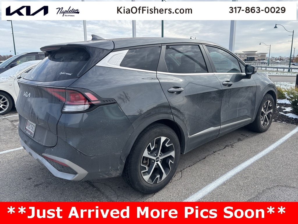 This Sportage is well equipped with Sportage EX, 4D Sport Utility, I4, 8-Speed Automatic, FWD, Gravity Gray, Black Artificial Leather, Heated Front Bucket Seats, Leatherette Seat Trim, 18" Machined Alloy Wheels, 4-Wheel Disc Brakes, 6 Speakers, ABS brakes, Air Conditioning, Alloy wheels, AM/FM radio: SiriusXM, Apple CarPlay & Android Auto, Auto High-beam Headlights, Automatic temperature control, Axle Ratio: 3.648, Brake assist, Bumpers: body-color, Carpeted Floor Mats, Compass, Delay-off headlights, Driver door bin, Driver vanity mirror, Dual front impact airbags, Dual front side impact airbags, Electronic Stability Control, Emergency communication system, Four wheel independent suspension, Front anti-roll bar, Front Bucket Seats, Front Center Armrest, Front dual zone A/C, Fully automatic headlights, Heated door mirrors, Heated front seats, Illuminated entry, Leather Shift Knob, Leather steering wheel, Low tire pressure warning, Navigation System, Occupant sensing airbag, Outside temperature display, Overhead airbag, Overhead console, Panic alarm, Passenger door bin, Passenger vanity mirror, Power door mirrors, Power driver seat, Power steering, Power windows, Radio: AM/FM/HD Audio System, Rain sensing wipers, Rear anti-roll bar, Rear seat center armrest, Rear side impact airbag, Rear window defroster, Rear window wiper, Remote keyless entry, Security system, Speed control, Speed-sensing steering, Split folding rear seat, Spoiler, Steering wheel mounted audio controls, Tachometer, Telescoping steering wheel, Tilt steering wheel, Traction control, Trip computer, Turn signal indicator mirrors, and Variably intermittent wipers.