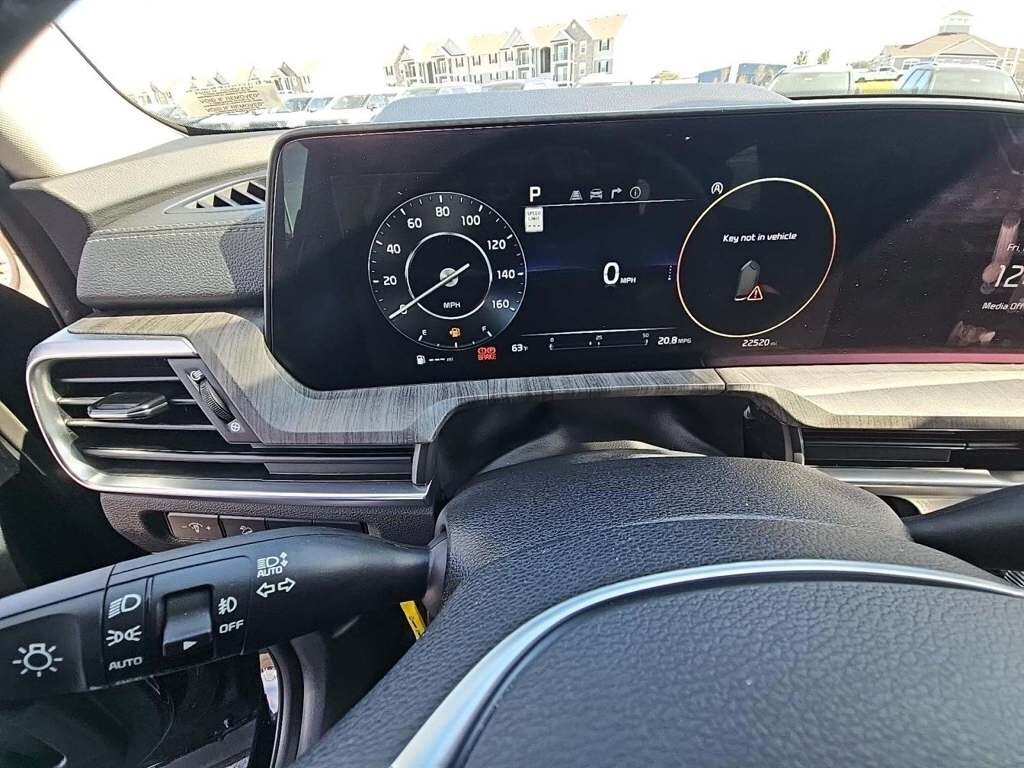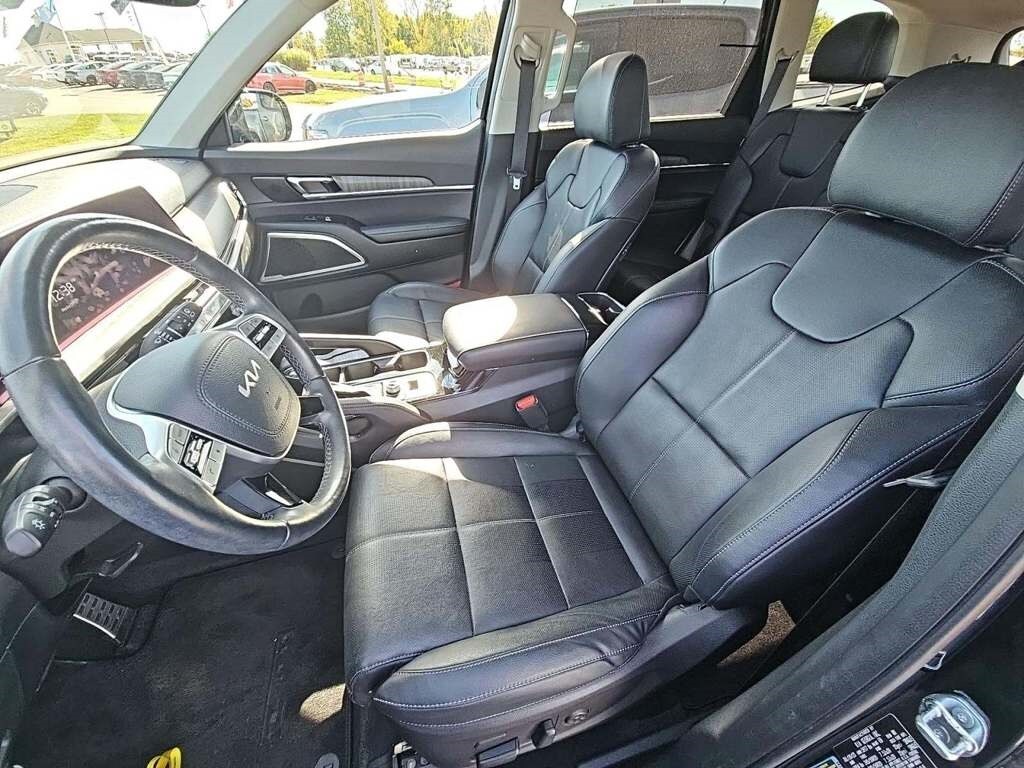 This Telluride is well equipped with 10 Speakers, 3.648 Axle Ratio, 3rd row seats: split-bench, 4-Wheel Disc Brakes, ABS brakes, Air Conditioning, Alloy wheels, AM/FM radio: SiriusXM, Apple CarPlay & Android Auto, Auto High-beam Headlights, Auto-dimming Rear-View mirror, Automatic temperature control, Brake assist, Bumpers: body-color, Carpet Floor Mats, Compass, Delay-off headlights, Driver door bin, Driver vanity mirror, Dual front impact airbags, Dual front side impact airbags, Electronic Stability Control, Emergency communication system: 911 Connect, Exterior Parking Camera Rear, Four wheel independent suspension, Front anti-roll bar, Front Bucket Seats, Front Center Armrest, Front dual zone A/C, Front fog lights, Front reading lights, Fully automatic headlights, Garage door transmitter: HomeLink, harman/kardon® Speakers, Heated & Ventilated Front Bucket Seats, Heated door mirrors, Heated front seats, Heated steering wheel, Illuminated entry, Knee airbag, Leather Seat Trim, Leather Shift Knob, Leather steering wheel, Low tire pressure warning, Memory seat, Navigation System, Occupant sensing airbag, Outside temperature display, Overhead airbag, Overhead console, Panic alarm, Passenger door bin, Passenger vanity mirror, Power door mirrors, Power driver seat, Power Liftgate, Power moonroof, Power passenger seat, Power steering, Power windows, Radio data system, Radio: AM/FM Harman Kardon Audio System, Rear air conditioning, Rear anti-roll bar, Rear audio controls, Rear reading lights, Rear side impact airbag, Rear window defroster, Rear window wiper, Reclining 3rd row seat, Remote keyless entry, Roof rack: rails only, Security system, Smart Key w/ Push Button and Remote Start, Speed control, Speed-sensing steering, Split folding rear seat, Spoiler, Steering wheel mounted audio controls, Tachometer, Telescoping steering wheel, Tilt steering wheel, Traction control, Trip computer, Turn signal indicator mirrors, Variably intermittent wipers, Ventilated front seats, and Wheels: 20" x 7.5" Black Finish.