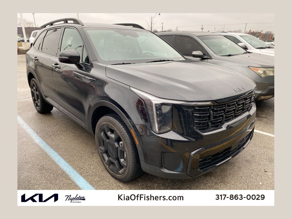 This Sorento is well equipped with Sorento EX, 4D Sport Utility, 2.5L I4 DGI Turbocharged DOHC 16V LEV3-SULEV30 281hp, 8 Speed Dual Clutch, AWD, Ebony Black, Black Artificial Leather, Power Liftgate, 3rd row seats: split-bench, 4-Wheel Disc Brakes, ABS brakes, Air Conditioning, Alloy wheels, AM/FM radio: SiriusXM, Apple CarPlay & Android Auto, Auto High-beam Headlights, Auto-dimming Rear-View mirror, Automatic temperature control, Brake assist, Bumpers: body-color, Carpeted Floor Mats, Delay-off headlights, Driver door bin, Driver vanity mirror, Dual front impact airbags, Dual front side impact airbags, Electronic Stability Control, Emergency communication system: 911 Connect, Exterior Parking Camera Rear, Four wheel independent suspension, Front anti-roll bar, Front Bucket Seats, Front Center Armrest, Front dual zone A/C, Front fog lights, Front reading lights, Fully automatic headlights, Heated door mirrors, Heated Front Bucket Seats, Heated front seats, Illuminated entry, Knee airbag, Leather Shift Knob, Leather steering wheel, Low tire pressure warning, Navigation System, Occupant sensing airbag, Outside temperature display, Overhead airbag, Overhead console, Panic alarm, Passenger door bin, Passenger vanity mirror, Power door mirrors, Power driver seat, Power passenger seat, Power steering, Power windows, Radio data system, Radio: AM/FM Standard Sound System, Rear anti-roll bar, Rear reading lights, Rear side impact airbag, Rear window defroster, Rear window wiper, Remote keyless entry, Security system, Speed control, Speed-sensing steering, Split folding rear seat, Spoiler, Steering wheel mounted audio controls, SynTex Artificial Leather Seat Trim, Tachometer, Telescoping steering wheel, Tilt steering wheel, Traction control, Trip computer, Turn signal indicator mirrors, and Variably intermittent wipers.