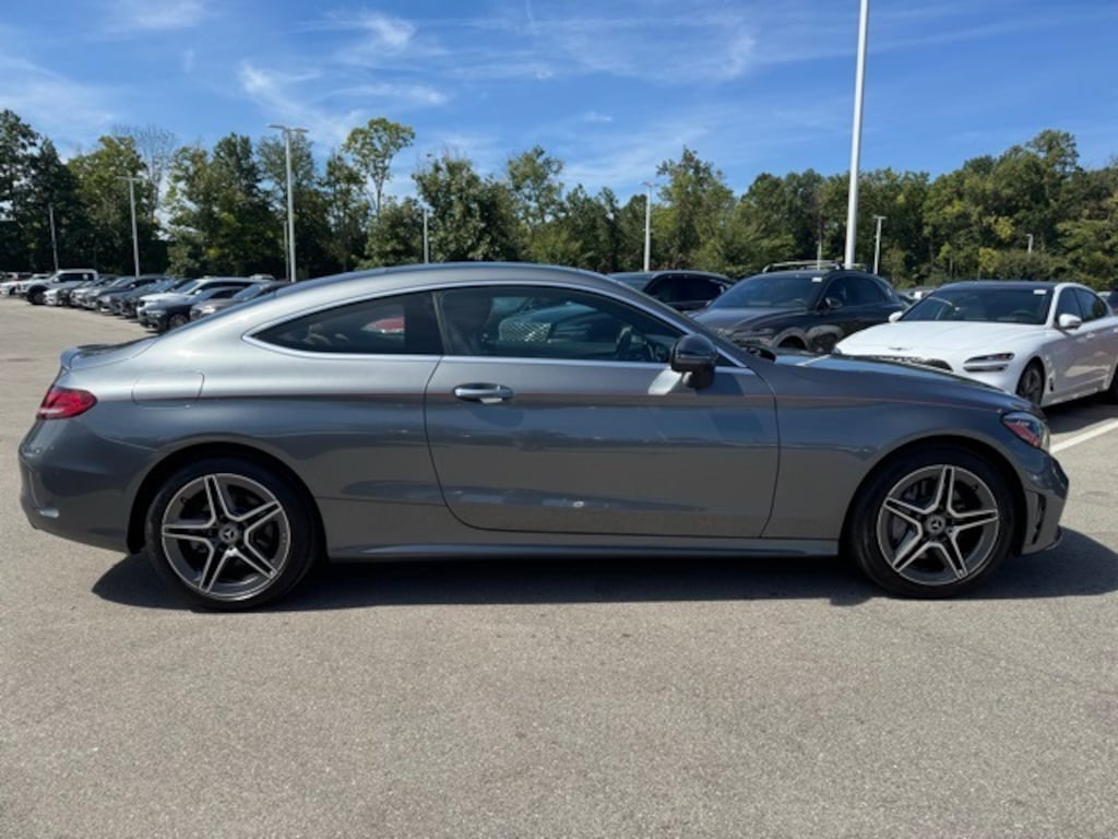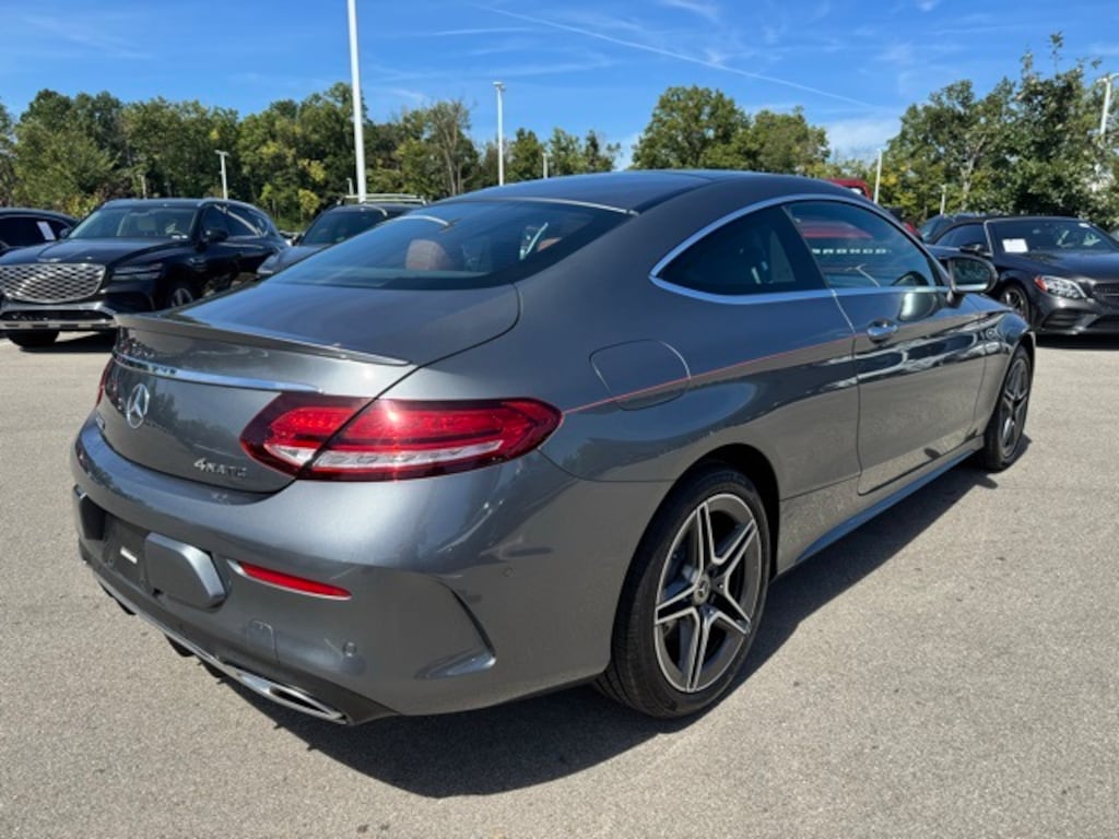 This C-Class is well equipped with 4MATIC®, 13 Speakers, 18" Alloy wheels, 4-Way Lumbar Support, 4-Wheel Disc Brakes, ABS brakes, Air Conditioning, AM/FM radio: SiriusXM, Android Auto®, Anti-whiplash front head restraints, Apple CarPlay®, Apple CarPlay®/Android Auto®, Auto tilt-away steering wheel, Auto-dimming door mirrors, Auto-dimming Rear-View mirror, Automatic temperature control, Brake assist, Child-Seat-Sensing Airbag, Color Match Body Molding, Compass, Delay-off headlights, Driver door bin, Driver vanity mirror, Dual front impact airbags, Dual front side impact airbags, Electronic Stability Control, Emergency communication system: Mercedes me connect, Exterior Parking Camera Rear, Four wheel independent suspension, Front anti-roll bar, Front Bucket Seats, Front Center Armrest, Front dual zone A/C, Front reading lights, Fully automatic headlights, Garage door transmitter: Homelink, Genuine wood console insert, HD Radio, Head restraints memory, Heated door mirrors, Illuminated entry, Knee airbag, Low tire pressure warning, MB-Tex Upholstery, Memory seat, Occupant sensing airbag, Outside temperature display, Overhead airbag, Overhead console, Panic alarm, Passenger door bin, Passenger vanity mirror, Power adjustable front head restraints, Power door mirrors, Power driver seat, Power Front Seats w/Driver Memory, Power moonroof: Panorama, Power passenger seat, Power steering, Power windows, Radio data system, Radio: Burmester® Surround Sound System, Rain sensing wipers, Rear anti-roll bar, Rear fog lights, Rear window defroster, Remote keyless entry, Security system, SiriusXM Satellite Radio, Smartphone Integration, Speed control, Speed-sensing steering, Split folding rear seat, Steering wheel memory, Steering wheel mounted audio controls, Tachometer, Telescoping steering wheel, Tilt steering wheel, Traction control, Trip computer, Turn signal indicator mirrors, Variably intermittent wipers, Weather band radio, and Wheels: 18" Split 5-Spoke.