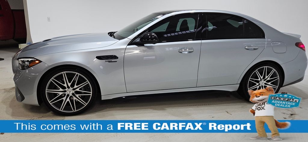 Priced below KBB Fair Purchase Price! Cirrus Silver Metallic 2025 Mercedes-Benz C-Class 4D Sedan C 63 S AMG® 4MATIC® 2.0L I4 Turbocharged 4MATIC® 9-Speed Automatic Odometer is 1586 miles below market average! Clean CARFAX.