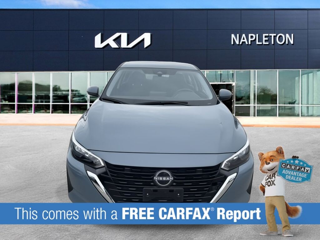 This Sentra is well equipped with CVT with Xtronic, Charcoal Cloth, 16" Alloy Wheels, 4-Wheel Disc Brakes, 6 Speakers, ABS brakes, Air Conditioning, Alloy wheels, AM/FM radio: SiriusXM, Auto High-beam Headlights, Blind Spot Warning, Brake assist, Bumpers: body-color, Carpeted Floor Mats w/Trunk Mat, Delay-off headlights, Driver door bin, Driver vanity mirror, Dual front impact airbags, Dual front side impact airbags, Electronic Stability Control, Four wheel independent suspension, Front anti-roll bar, Front Bucket Seats, Front Center Armrest, Front reading lights, Fully automatic headlights, Illuminated entry, Knee airbag, Leather steering wheel, Low tire pressure warning, NissanConnect featuring Apple CarPlay and Android Auto, Occupant sensing airbag, Outside temperature display, Overhead airbag, Overhead console, Panic alarm, Passenger door bin, Passenger vanity mirror, Power door mirrors, Power steering, Power windows, Radio data system, Radio: AM/FM w/RDS/MP3/Aux-In, Rear anti-roll bar, Rear Parking Sensors, Rear side impact airbag, Rear window defroster, Remote keyless entry, Security system, Speed control, Speed-sensing steering, Split folding rear seat, Steering wheel mounted audio controls, Tachometer, Technical Spec Change 2, Telescoping steering wheel, Tilt steering wheel, Traction control, Trip computer, Upgraded Cloth Seat Trim, and Variably intermittent wipers.