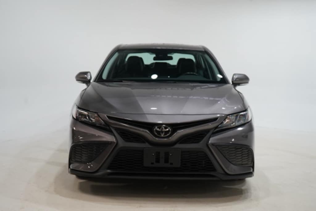 This Camry is well equipped with Black Artificial Leather, ABS brakes, Active Cruise Control, Alloy wheels, Electronic Stability Control, Front dual zone A/C, Heated door mirrors, Illuminated entry, Low tire pressure warning, Remote keyless entry, Traction control, 4-Wheel Disc Brakes, 6 Speakers, 8.0J x 18" Alloy Wheels, Air Conditioning, AM/FM radio: SiriusXM, Apple CarPlay/Android Auto, Auto High-beam Headlights, Automatic temperature control, Brake assist, Bumpers: body-color, Delay-off headlights, Driver door bin, Driver vanity mirror, Dual front impact airbags, Dual front side impact airbags, Emergency communication system: Safety Connect (1-year trial), Exterior Parking Camera Rear, Four wheel independent suspension, Front anti-roll bar, Front Bucket Seats, Front Center Armrest, Front reading lights, Fully automatic headlights, Knee airbag, Leather steering wheel, Occupant sensing airbag, Outside temperature display, Overhead airbag, Overhead console, Panic alarm, Passenger door bin, Passenger vanity mirror, Power door mirrors, Power driver seat, Power steering, Power windows, Radio data system, Radio: Audio, Rear anti-roll bar, Rear seat center armrest, Rear side impact airbag, Rear window defroster, Security system, Speed control, Speed-sensing steering, Split folding rear seat, Spoiler, Sport SofTex Seat Trim w/Fabric Inserts, Steering wheel mounted audio controls, Tachometer, Telescoping steering wheel, Tilt steering wheel, Trip computer, Turn signal indicator mirrors, and Variably intermittent wipers.