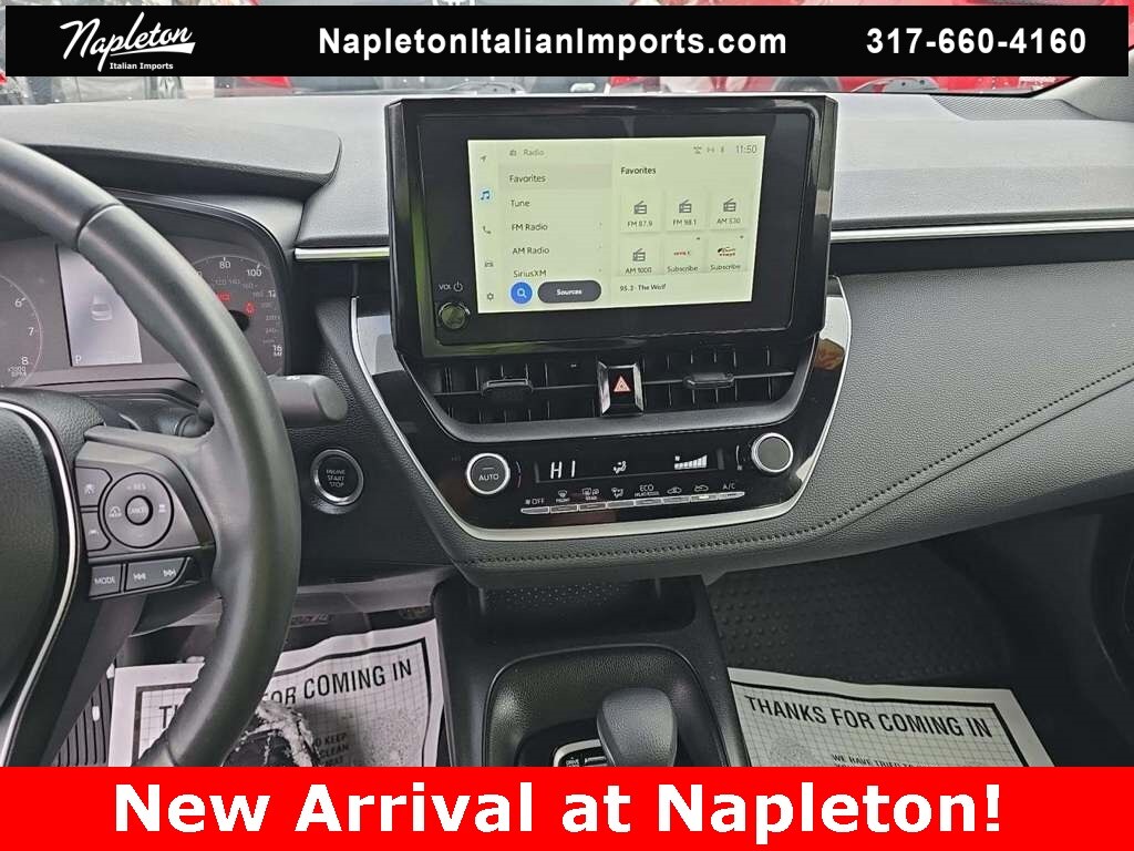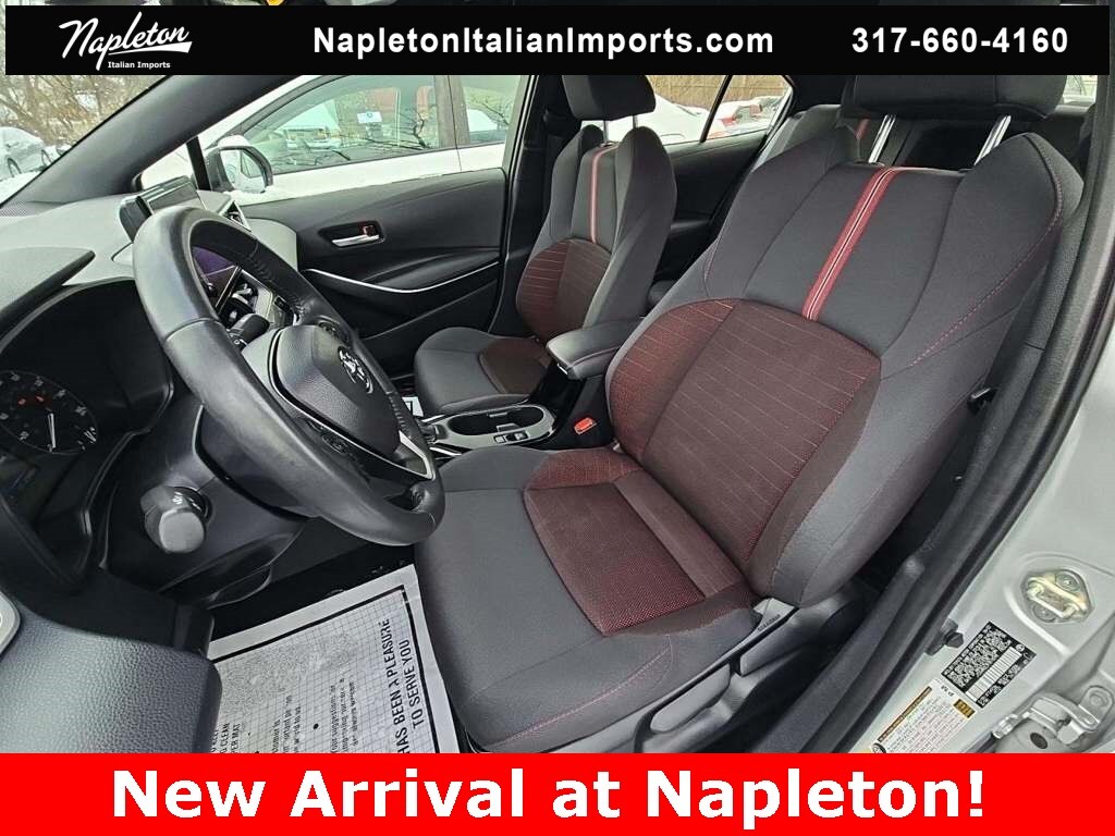 This Corolla is well equipped with Front Sport Seats, Premium Seat Trim, Radio: 8" Toyota Audio Multimedia, Wheels: 18" Alloy w/Graphite Finish, 4-Wheel Disc Brakes, 6 Speakers, ABS brakes, Air Conditioning, Alloy wheels, AM/FM radio: SiriusXM, Auto High-beam Headlights, Automatic temperature control, Brake assist, Bumpers: body-color, Delay-off headlights, Driver door bin, Driver vanity mirror, Dual front impact airbags, Dual front side impact airbags, Electronic Stability Control, Emergency communication system: Safety Connect (up to 10-year trial subscription), Exterior Parking Camera Rear, Four wheel independent suspension, Front anti-roll bar, Front Bucket Seats, Front Center Armrest, Front reading lights, Fully automatic headlights, Heated door mirrors, Illuminated entry, Knee airbag, Leather steering wheel, Low tire pressure warning, Occupant sensing airbag, Outside temperature display, Overhead airbag, Panic alarm, Passenger door bin, Passenger vanity mirror, Power door mirrors, Power steering, Power windows, Radio data system, Rear anti-roll bar, Rear seat center armrest, Rear side impact airbag, Rear window defroster, Remote keyless entry, Speed control, Split folding rear seat, Spoiler, Steering wheel mounted audio controls, Tachometer, Telescoping steering wheel, Tilt steering wheel, Traction control, Trip computer, Turn signal indicator mirrors, and Variably intermittent wipers.