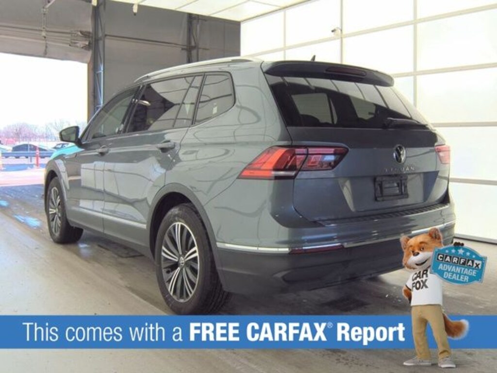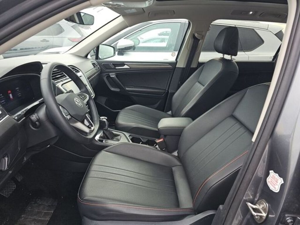 This Tiguan is well equipped with Tiguan 2.0T Wolfsburg Edition, 4D Sport Utility, 2.0L TSI DOHC, 8-Speed Automatic with Tiptronic, FWD, Platinum Gray Metallic, Black Artificial Leather, Power Liftgate, 3.33 Axle Ratio, 3rd row seats: bench, 4-Wheel Disc Brakes, 4-Wheel Independent Suspension, 6 Speakers, ABS brakes, Air Conditioning, Alloy wheels, AM/FM radio: SiriusXM with 360L, Auto-dimming Rear-View mirror, Brake assist, Bumpers: body-color, Compass, Delay-off headlights, Driver door bin, Driver vanity mirror, Dual front impact airbags, Dual front side impact airbags, Electronic Stability Control, Emergency communication system: VW Car-Net Safe & Secure 5-year, Exterior Parking Camera Rear, Four wheel independent suspension, Front anti-roll bar, Front Bucket Seats, Front Center Armrest, Front reading lights, Fully automatic headlights, Heated door mirrors, Heated Front Seats, Heated front seats, Illuminated entry, Leather Shift Knob, Low tire pressure warning, Occupant sensing airbag, Outside temperature display, Overhead airbag, Overhead console, Panic alarm, Passenger door bin, Passenger vanity mirror, Power door mirrors, Power driver seat, Power steering, Power windows, Radio data system, Radio: MIB3 Composition Media AM/FM/HD, Rain sensing wipers, Rear anti-roll bar, Rear reading lights, Rear seat center armrest, Rear window defroster, Rear window wiper, Remote keyless entry, Security system, Speed control, Speed-sensing steering, Split folding rear seat, Spoiler, Steering wheel mounted audio controls, Tachometer, Telescoping steering wheel, Tilt steering wheel, Traction control, Trip computer, Turn signal indicator mirrors, V-Tex Leatherette Seating Surfaces, Variably intermittent wipers, and Wheels: 18" 2-Tone Machined Alloy.